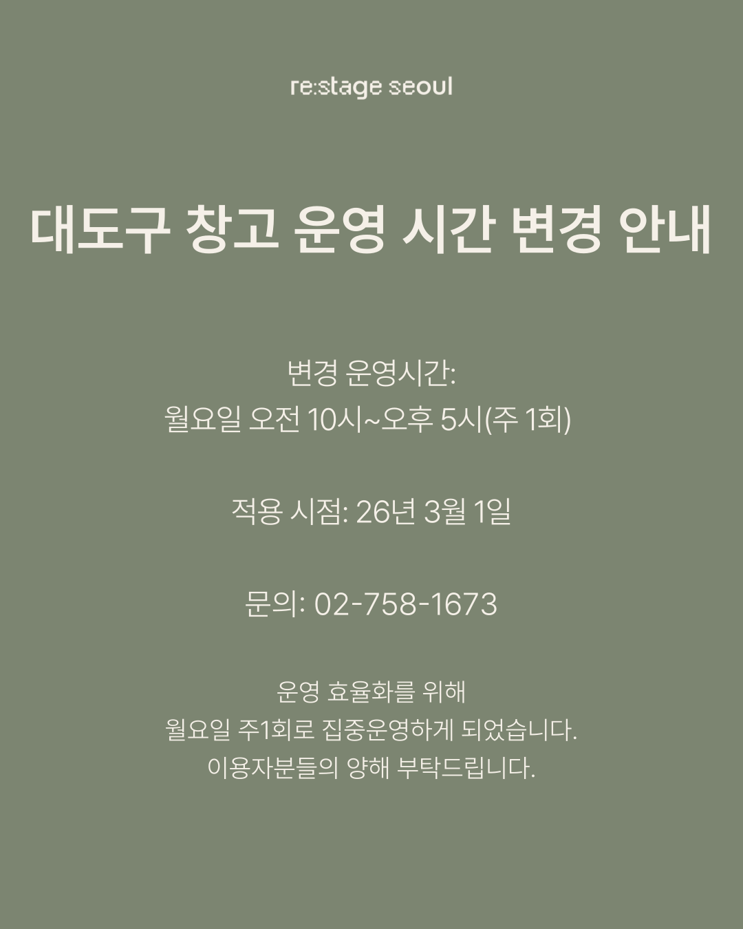 리스테이지 서울 대도구창고를 이용해 주신 모든 분들께 진심으로 감사드립니다.